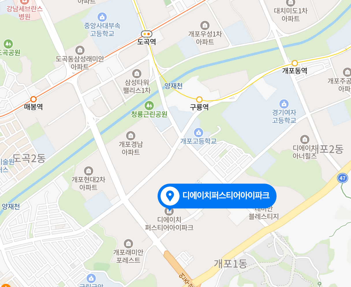 주변에 3호선 매봉역, 도곡역이 있고